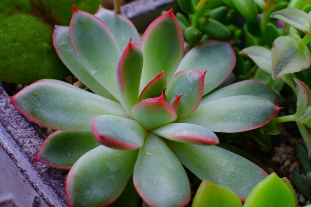 エケベリアは、バラの花のような美しいロゼット型が特徴で、多様な品種が存在し、コレクションする楽しみもあります。